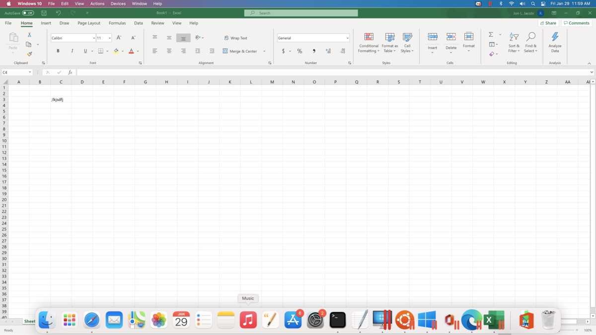 Microsoft Excel x86/64 запущенный в виртуальной машине Parallels Desckotop для Mac