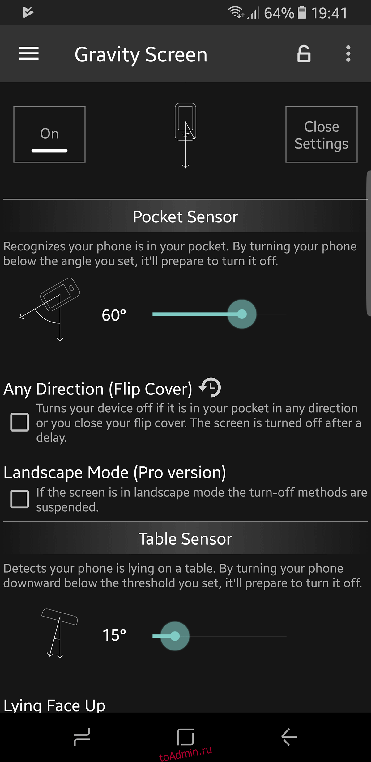 Пробуждение по датчику Если описанный выше способ вам по каким-то причинам не подходит, к вашим услугам приложения, которые позволяют управлять девайсом с помощью датчиков: акселерометра, гироскопа или сенсора приближения. Самое популярное решение для этого – Gravity Screen.