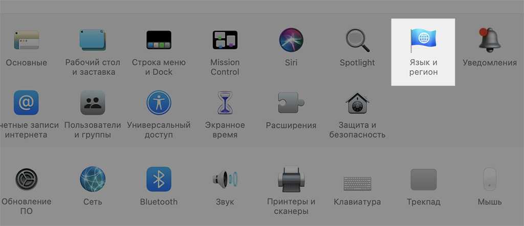 - Заходим в «Системные настройки» своего Mac и выбираем «Язык и регион»
