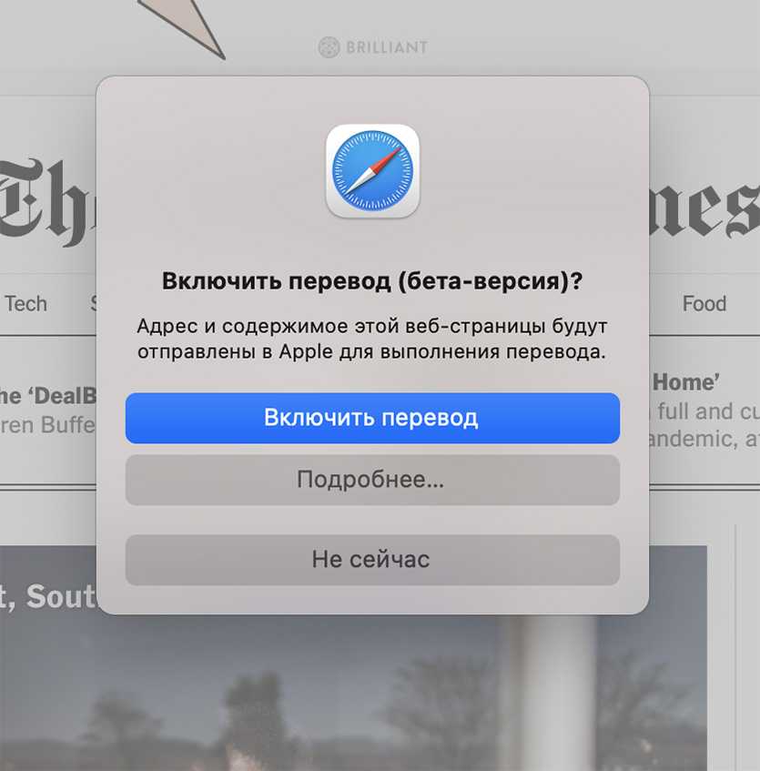 Перевод веб-страницы в Safari на Mac (бета-версия)