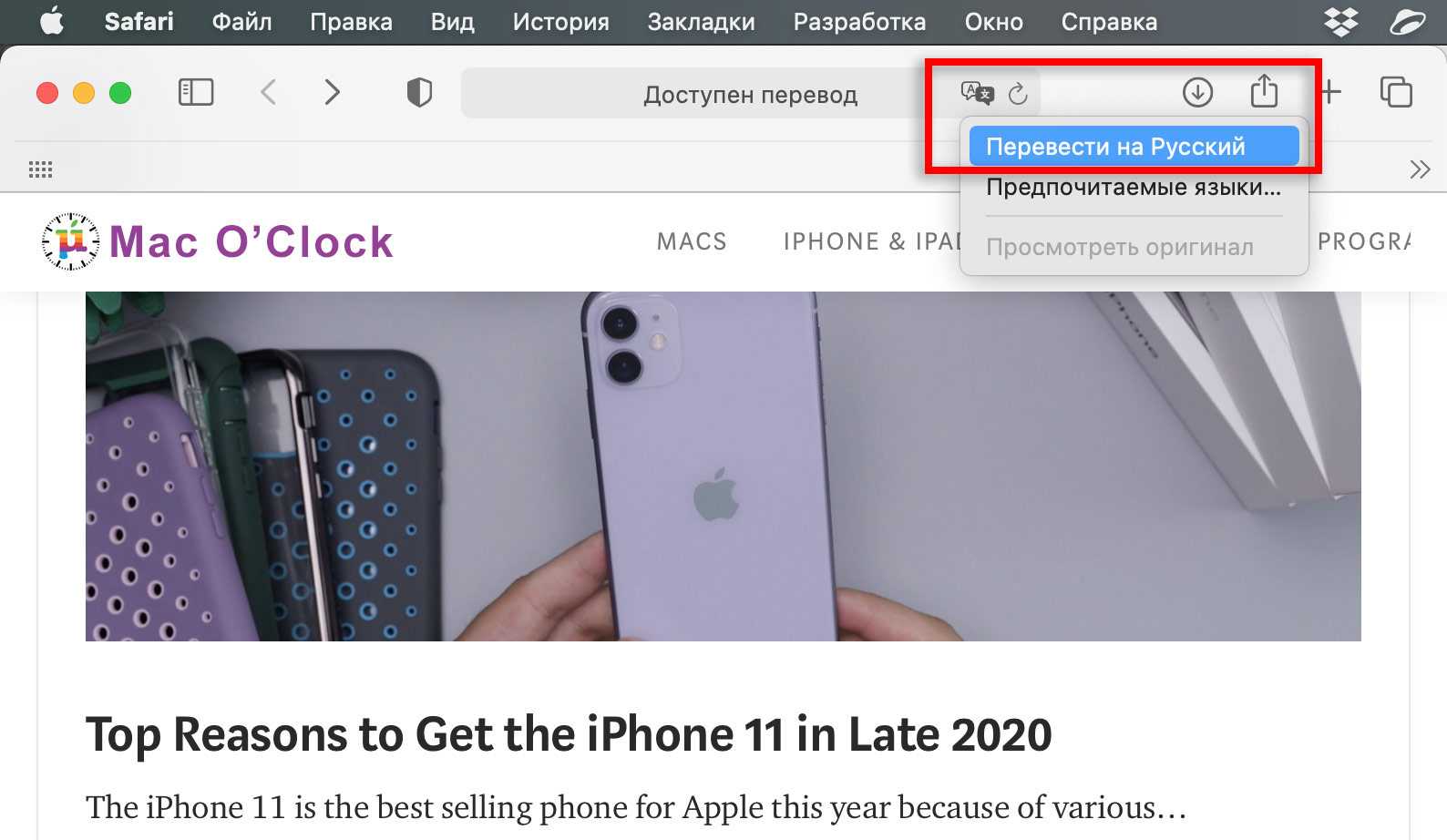 Как перевести страницу на русский в сафари на Макбуке?