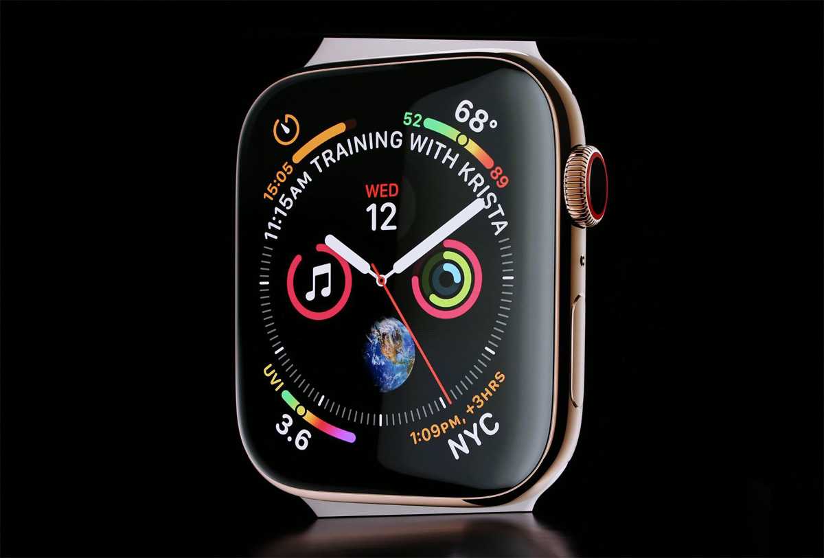 Уже по сложившейся традиции вместе со смартфонами Apple демонстрирует и новые часы. На сей раз это Watch Series 4, которые будут доступны в двух размерах, 40 и 44 мм. По дизайну они похожи на модели прошлого поколения, но экран теперь стал на треть больше, а рамки — заметно уже. Под новые размеры были переработаны существующие циферблаты и создано немало новых. Одним из них стал модульный «Инфограф», который можно дополнять различными расширениями. Последние добавляют на экран индекс УФ‑излучения, прогноз погоды, время рассвета и заката, сведения о фазе Луны и так далее. Также были изменены и стандартные приложения, которые теперь смогут демонстрировать больше полезной информации.
