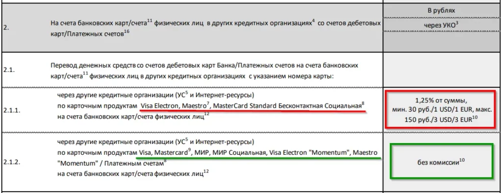 И в этом тарифе написано черным по белому, что комиссия будет не со всех карт. За «стягивание» с карт МИР, МИР Социальная, Visa, MasterCard, Visa Electron Momentum и Maestro Momentum комиссия браться не будет. Т.е. обычные зарплатные и пенсионные дебетовые карты под новое правило не попадают.