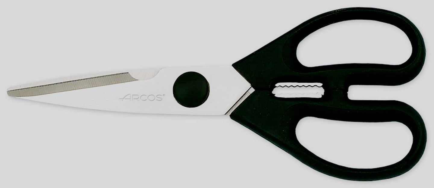 Кухонные ножницы, с зазубренной поверхностью лезвия из нержавеющей стали, плотные и острые. Примерная цена – 1200 руб.