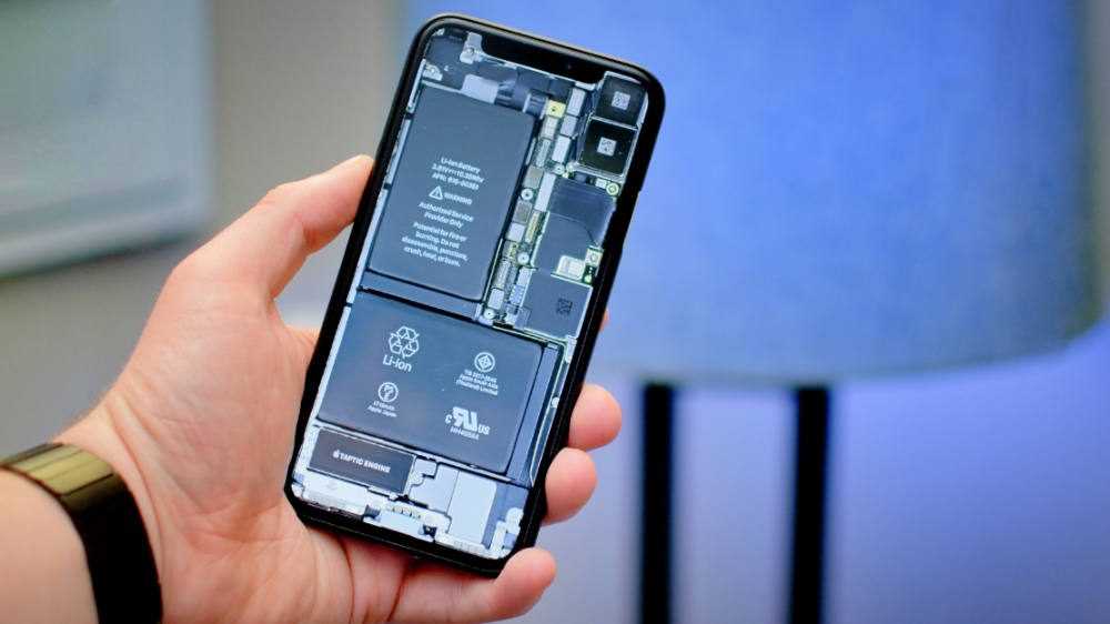 Смотря на iPhone с такой заставкой, создаться ощущение, что у смартфона нет экрана, а значки приложений находятся, прям поверх «внутренностей» устройства, аккумулятор, процессора и остальных частей.