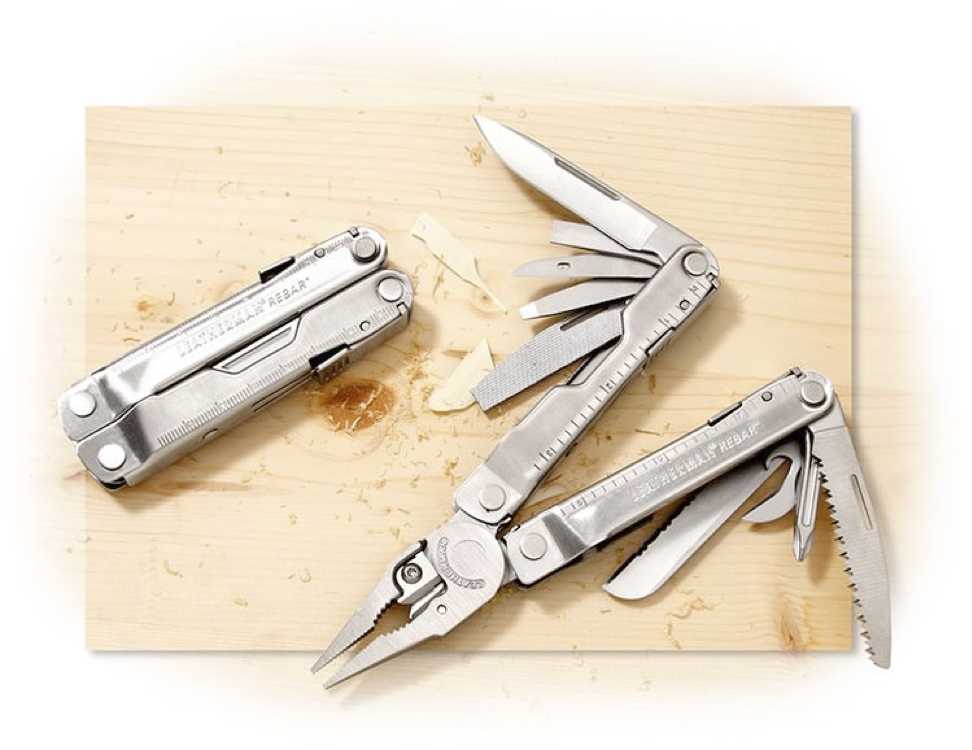 Полноразмерное многофункциональное устройство от известного американского производителя стало настолько популярным, что подделывается китайцами. Оригинальный вариант при приемлемой стоимости включает в себя пассатижи с узкогубцами, нож, напильник, 4 различных отвертки, открывалку.