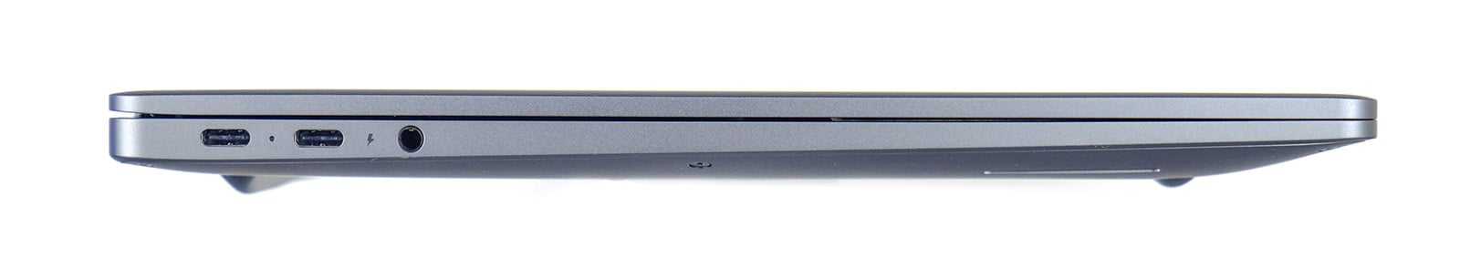 Слева на корпусе расположены два разъёма USB Type-C интерфейса Thunderbolt 4 (с поддержкой зарядки и DisplayPort), а также комбинированный аудиоразъём 3,5 мм миниджек.