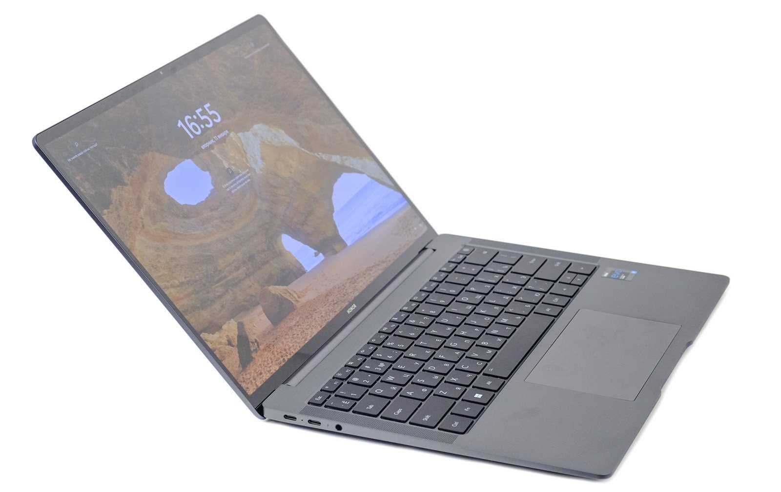 Интерфейсы – не самая сильная сторона этого поколения Honor MagicBook 14: 1 x USB-C 2.0, 1 x USB-A 2.0, 1 x USB-A 3.2, 1 x HDMI 2.0, 1 x комбинированный миниджек 3,5 мм. Вроде всё при нём, но стоит иметь ввиду, что USB-C часто будет занят зарядкой, а для вывода видео на внешний экран тут только HDMI. Добавь производитель сюда щепотку Thunderbolt’ов и претензий бы не было.