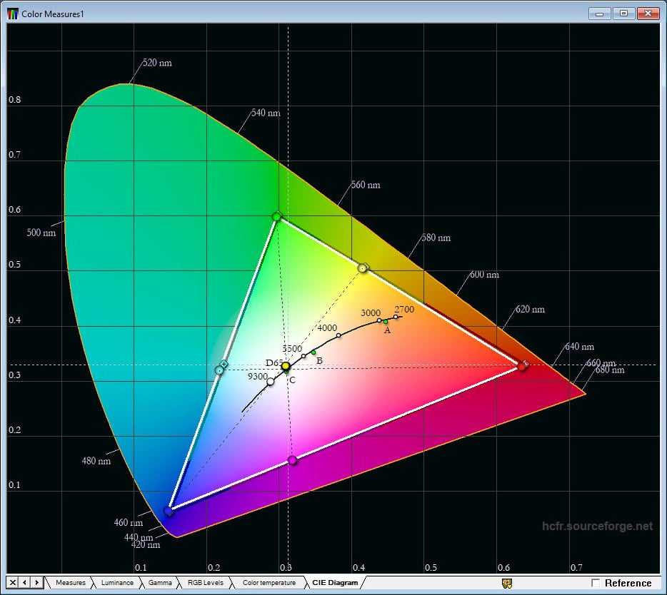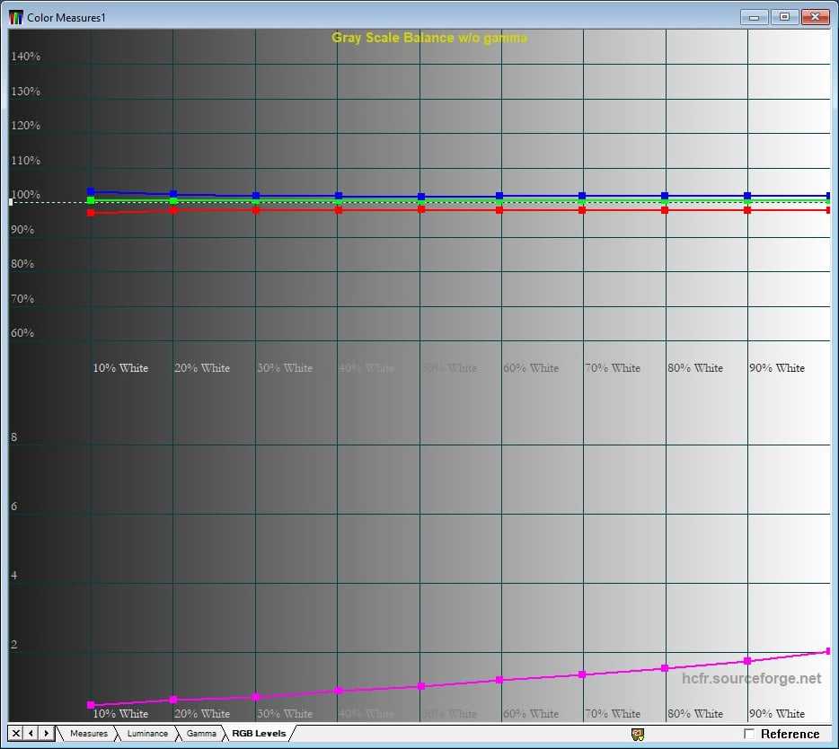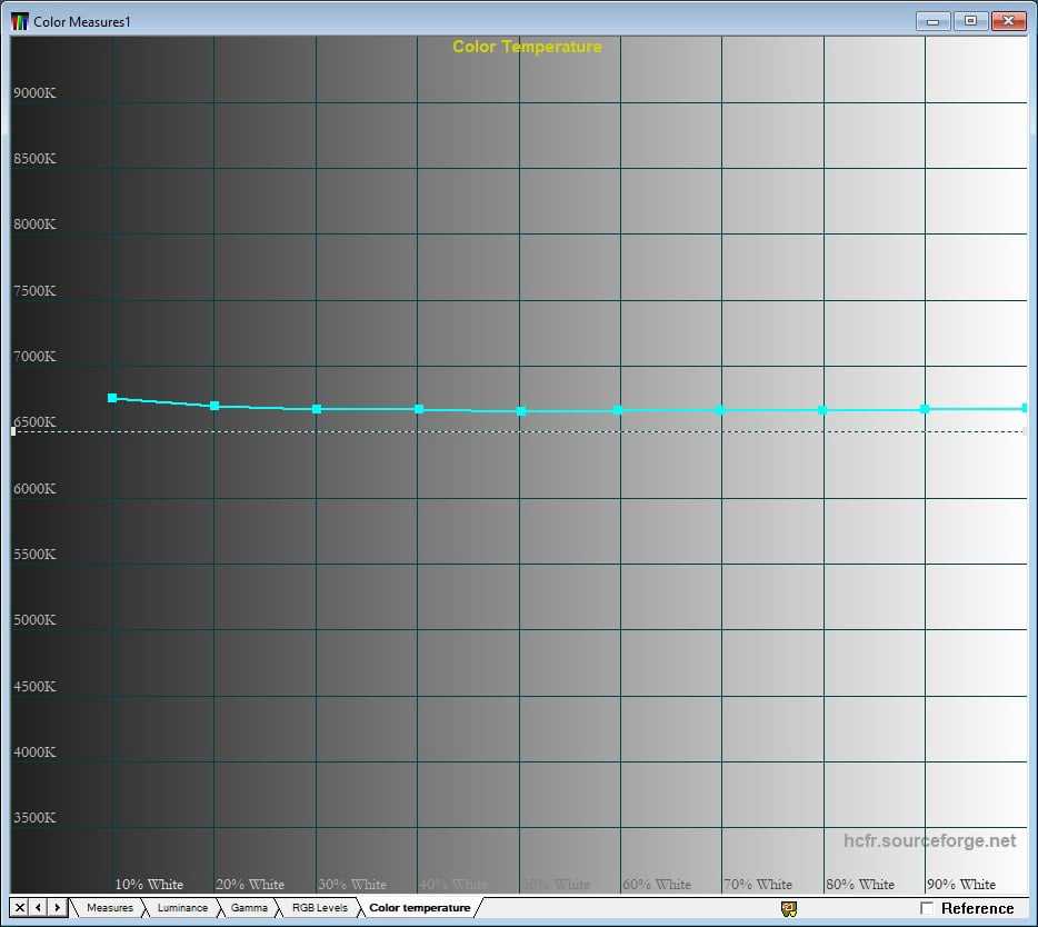 Баланс цветов RGB по умолчанию настроен довольно точно с небольшим преобладанием синего. Цветовая температура чуть холоднее эталонной – около 6700 К.