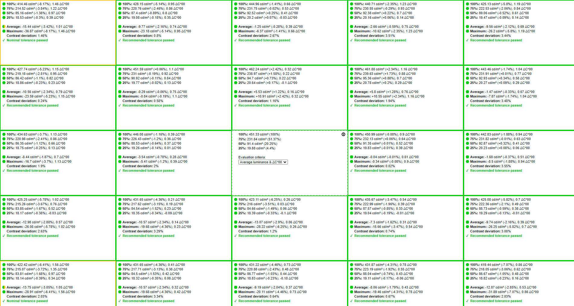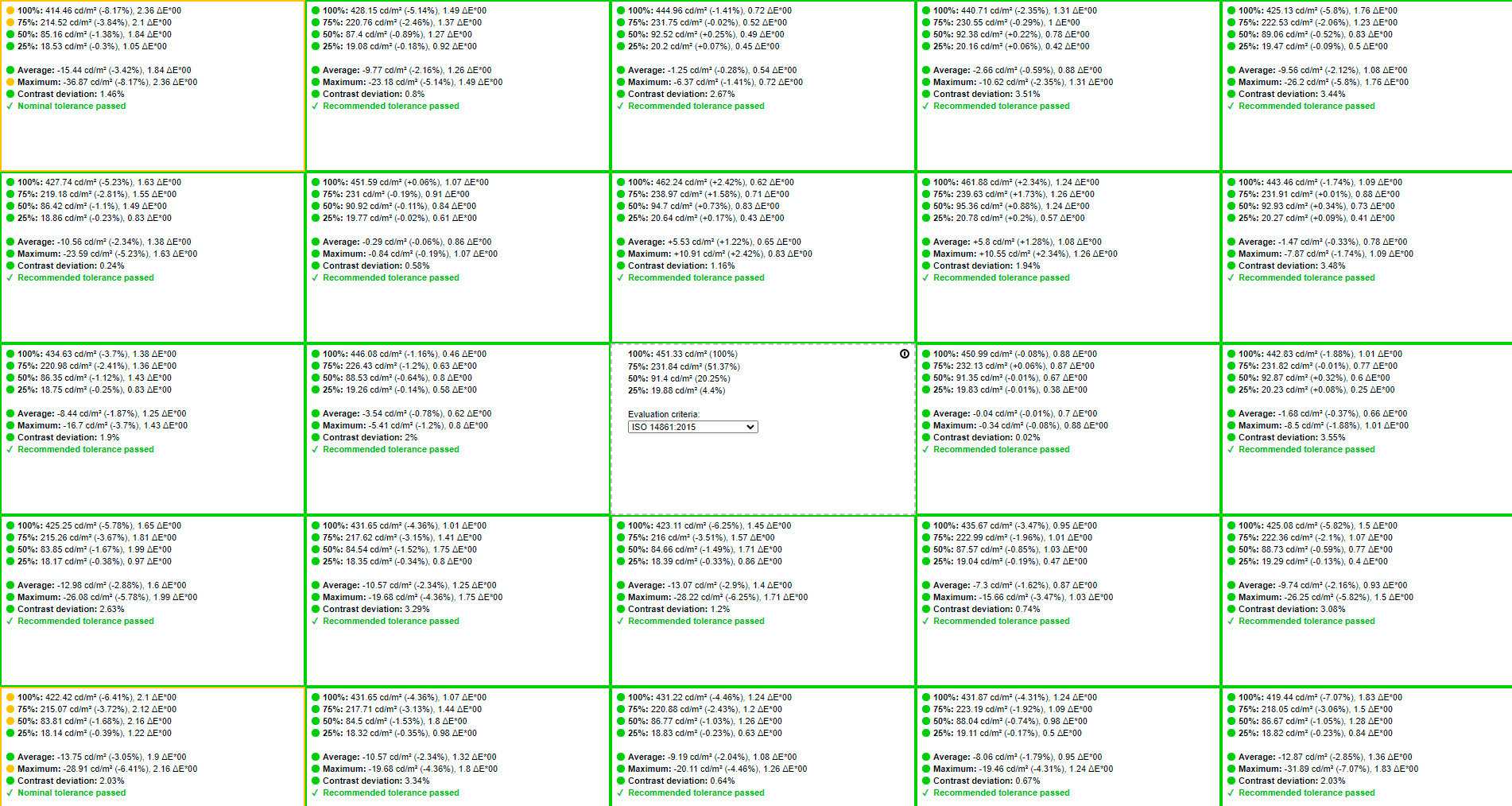Однородность подсветки также не вызывает никаких нареканий – небольшая флуктуация при оценке по стандарту ISO 14861: 2015 присутствует, но совершенно незначительная, всё в пределах нормы.