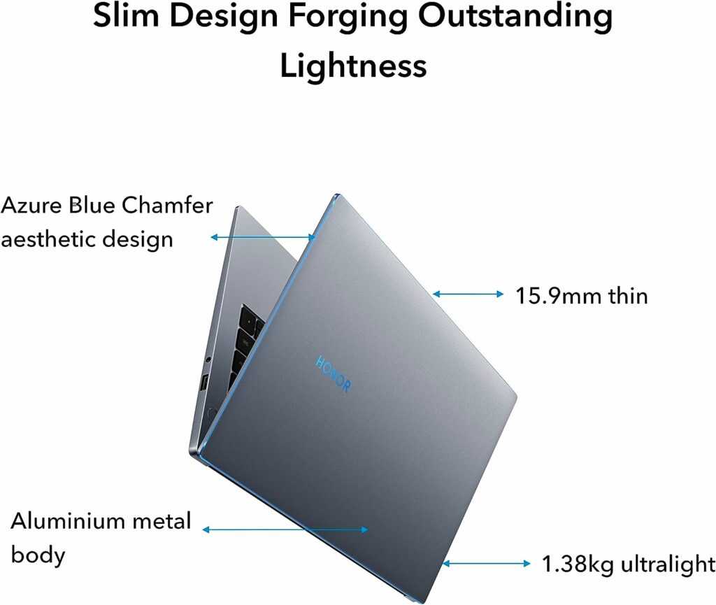 The Honor MagicBook 14 stands out from the crowd with its premium aluminum metal body, measuring just 15.9mm in thickness. The slim design and narrow 4.8mm bezels give this laptop a modern and elegant look that is sure to turn heads. Not only is it aesthetically pleasing, but it also weighs only 1.38kg, making it incredibly portable and convenient for travel and work on the go.