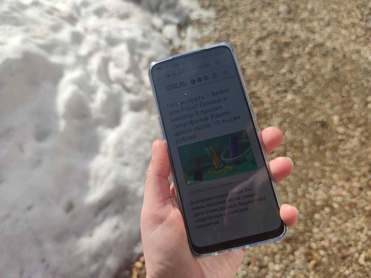 С четкостью у Reno5 Lite все в порядке, а вот яркость подкачала. При использовании телефона солнечным днем экран начинает бликовать даже при принудительно установленных ста процентах. Заводская пленка на дисплее легко собирает отпечатки пальцев и пыль, что тоже не способствует хорошей видимости.