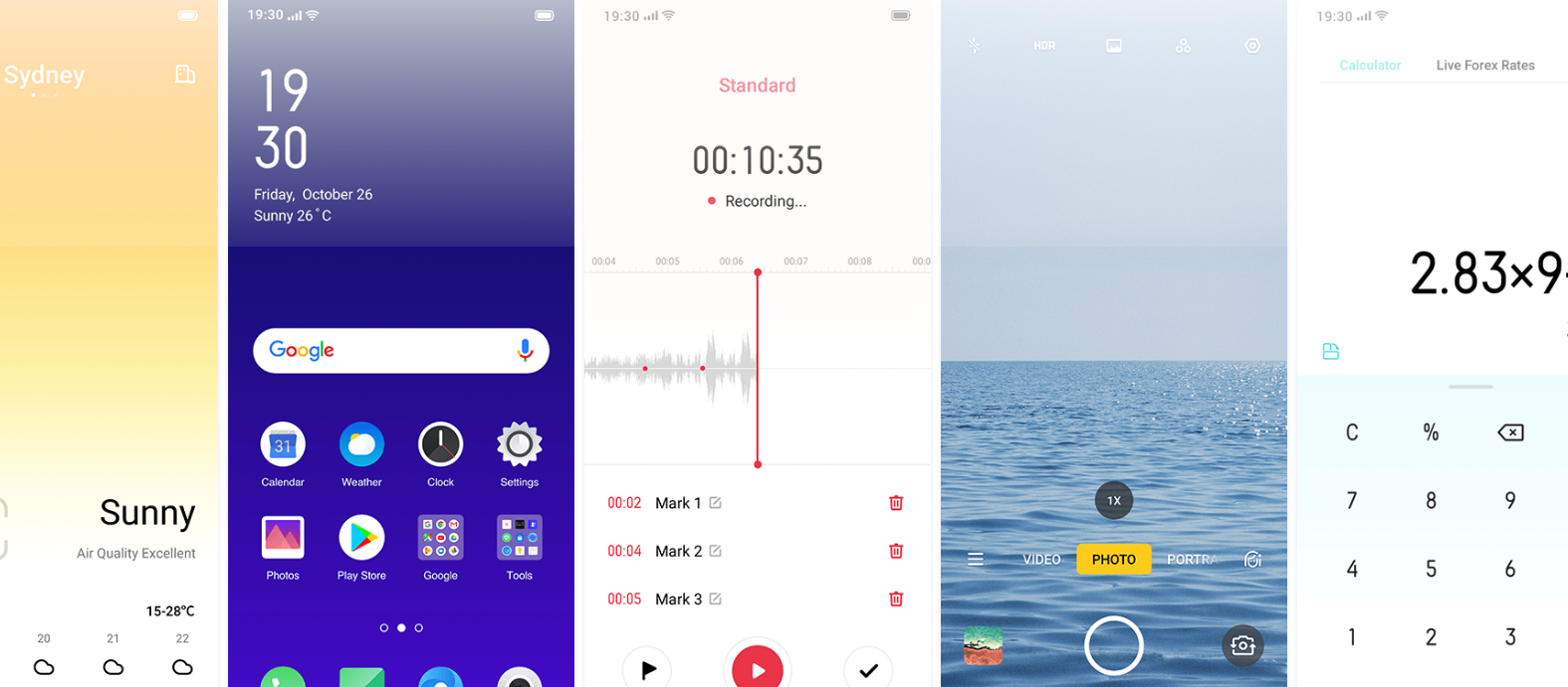 Операционной системой всех новинок этого года уже стандартно станет Android 9.0 (pie) в адаптированной вариации ColorOS 6.1. Исходя из данных с официального сайта, новый интерфейс девайсов будет в приятных мягких тонах.