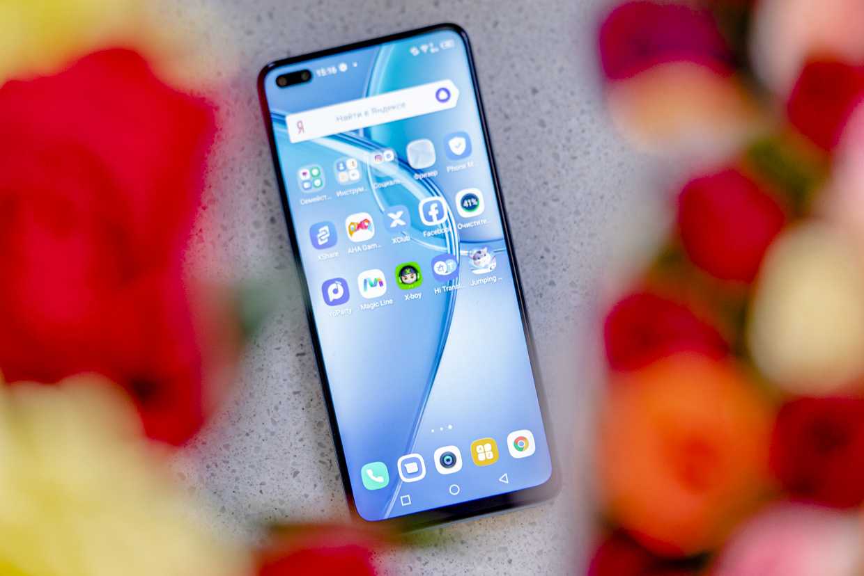 У этого смартфона огромный IPS-экран размером 6,85 дюйма с разрешением Full HD+ (2460 х 1080 пикселей). Во время игр его комфортно держать в руках, крепкий хват с комплектным силиконовым чехлом создаёт ощущение портативной консоли.