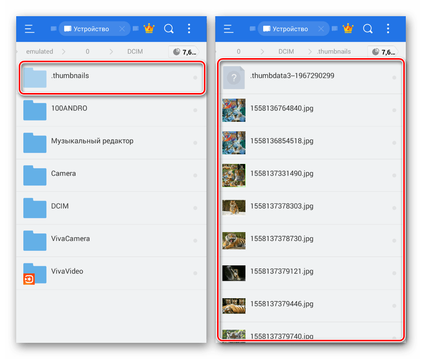 Одной из особенностей работы Android является постоянная генерация эскизов всех картинок, которые присутствуют на устройстве. Они отнимают довольно много полезного места, что отмечается в блоке «Другое». Следовательно, для решения проблемы эти данные можно удалить.