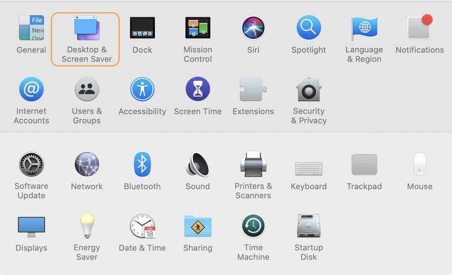 1. Откройте «Системные настройки» и нажмите «Рабочий стол и экранная заставка».