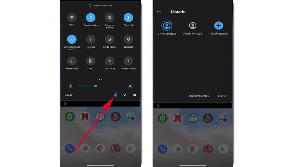 Это делает все действия, которые мы выполняем в приложении. Таким образом мы защищаем личную почту, способы оплаты, адреса, изображения и множество информации. Мы можем сделать это быстро опускание панели уведомлений и щелкнув значок аватара. Затем мы авторизуемся, и это позволит нам загружать и использовать приложения из Play Store, при этом вся информация сохраняется в профиле по умолчанию.