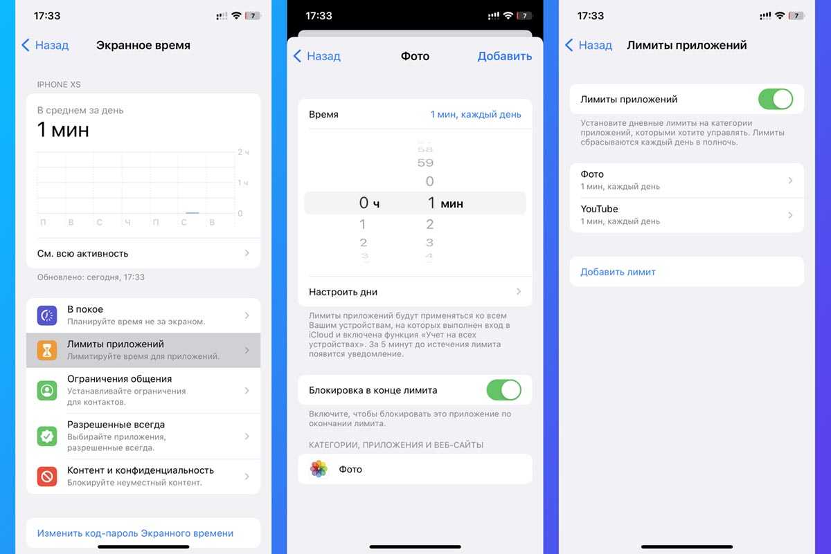 Чтобы не пользоваться мудреной автоматизацией, можно включить ограничение на использование приложений через стандартную фишку – Экранное время.