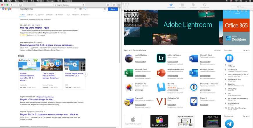 Многие приложения на Mac поддерживают режим Split View, который позволяет одновременно работать в двух приложениях, расположив их окна рядом.