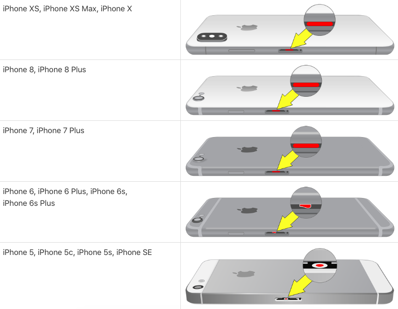 Осмотр индикатора контакта с жидкостью — очень важный этап проверки. В последних моделях iPhone он расположен внутри слота для SIM-карты. Если смартфон побывал под водой, индикатор окрасится в красный цвет. Покупать такое устройство мы не советуем ни за какие деньги.