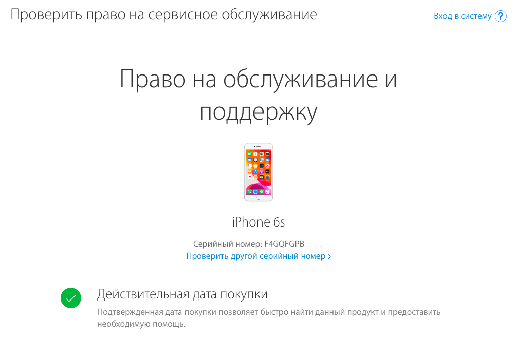После этого появится информация об устройстве. Если оно оригинальное, значит, высветится модель аппарата, а также данные о гарантии. Если же в руках у вас копия, то сайт не сможет найти информацию об устройстве.