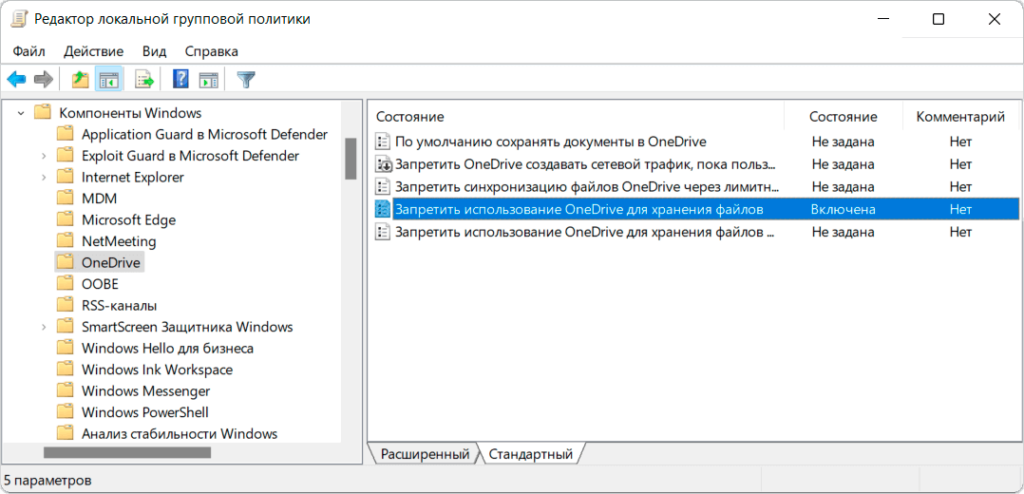 3. Как отключить OneDrive с помощью редактора групповой политики