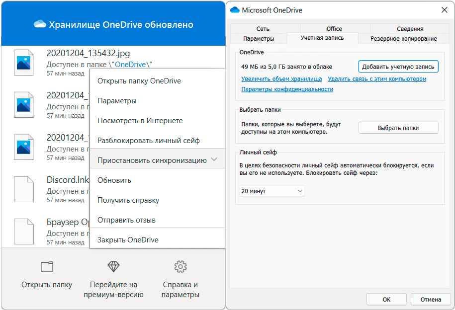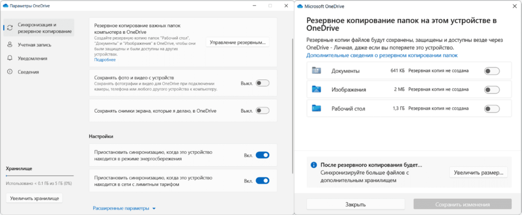 - отключение синхронизации приводит к тому, что некоторые данные будут доступными только в OneDrive.