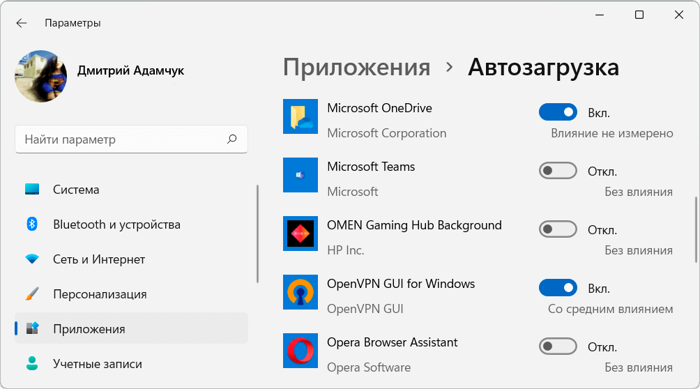 В разделе Параметры > Приложения > Автозагрузка найдите Microsoft OneDrive. Напротив него перетяните ползунок с Включено на Отключено. Это приложение с высоким влиянием: требует более 1 секунды времени ЦП и не только. Смотрите, тонкая настройка автозагрузки Windows 11.