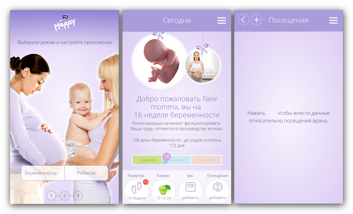 «Я беременна». Это приложение похоже на энциклопедию для будущих мам. Здесь есть все, чтобы наблюдать за эволюцией беременности, следить за своим телом и правильным набором массы, а также отслеживать стадии развития малыша на каждой неделе беременности. Кроме того, здесь есть ценные советы о правильном поведении при родах, дыхательной гимнастике и правильной подготовке мышц тела.