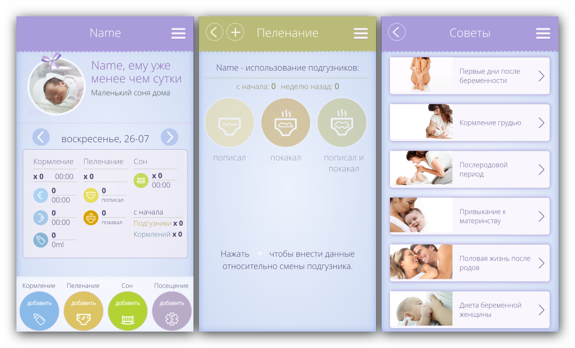 Во втором функциональность меняется соответствующим образом – доступны журналы кормления, пеленания и сна с напоминаниями, мониторинг развития, средство контроля веса и роста, плюс настройка расписания визитов к врачу. В обоих режимах также можно ознакомиться с разнообразными советами. Приложение бесплатное без ограничений и полностью на русском, но время от времени показывает ненавязчивую рекламу.