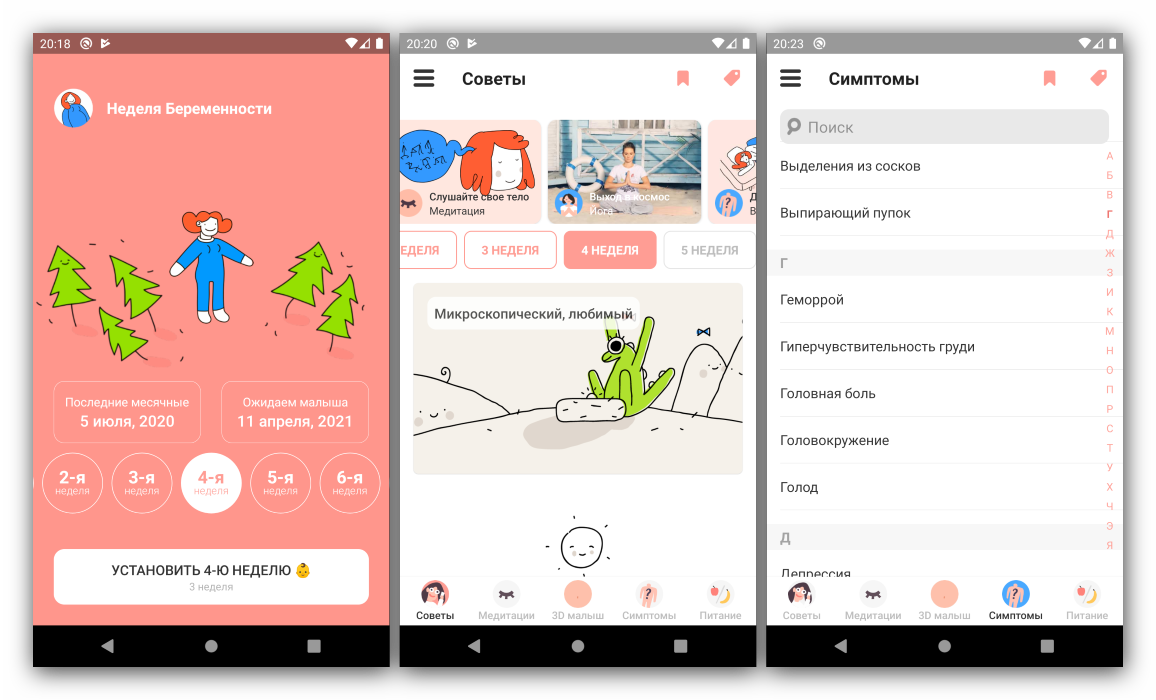 Пожалуй, самое позитивное приложение из сегодняшней подборки – одной из целей его авторов является как раз облегчить моральное состояние будущих родителей, так что спроектировано Хелло Белли максимально дружелюбно и не без юмора. В плане возможностей оно представляет собой сборник советов, причём под каждого пользователя подборка составляется индивидуально. Среди таких есть рекомендации по питанию и методы устранения неприятных симптомов вроде тошноты и головокружения.