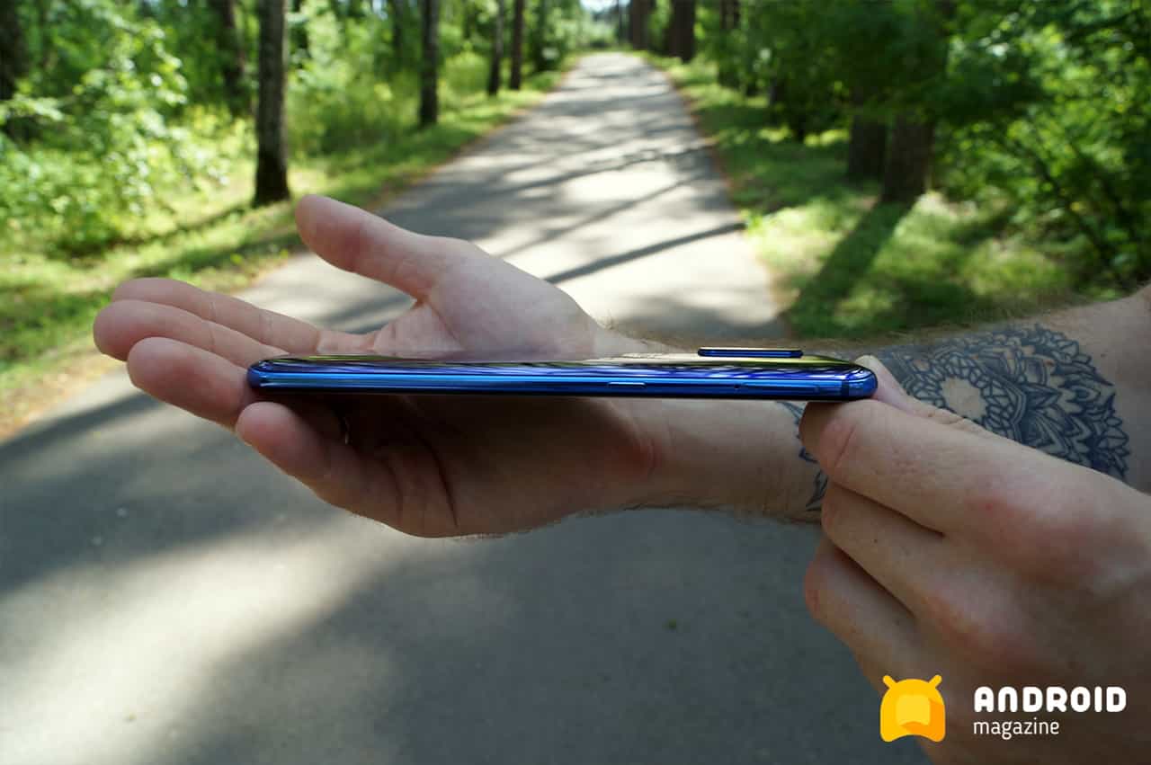 На нижней боковой грани у Xiaomi Mi 9 по центру располагается разъем USB-Type C, слева от него – микрофон, а справа – динамик. На левой боковой грани находится специальная клавиша для запуска Google-ассистента и слот, куда можно поставить только 2 sim-карты формата Nano Sim. Слота для карт памяти, как обычно для флагманов Xiaomi, нет.