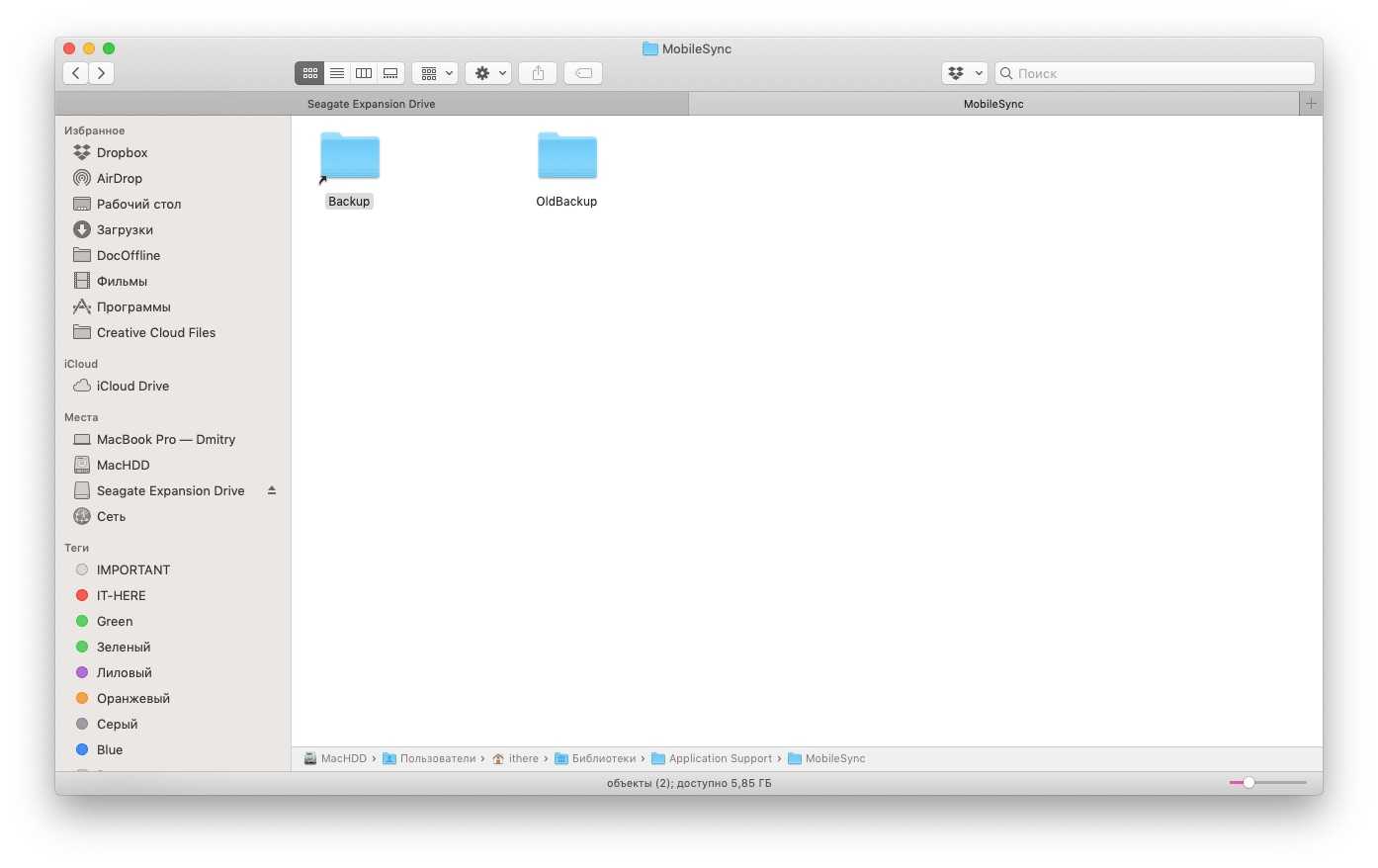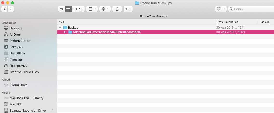 Убедитесь, что папка правильно скопирована. Теперь, вернувшись в исходную папку (~/Library/Application Support/MobileSync/