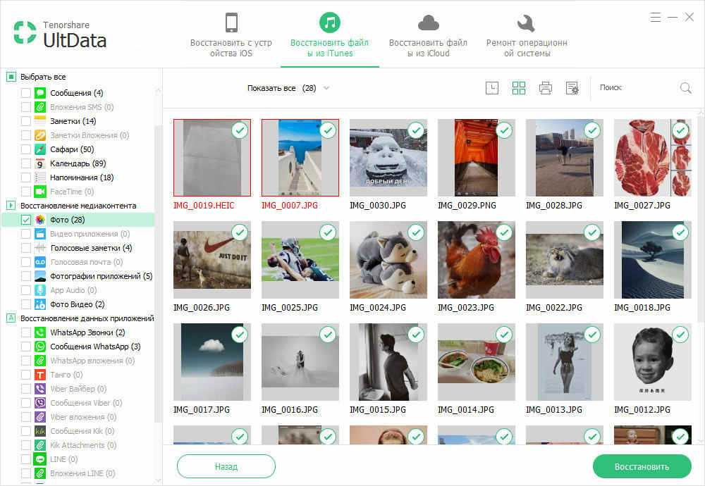 2. Выберите данные, которые нужно восстановить. И вы можете вытащить контакты и сообщения из резервной копии iTunes.