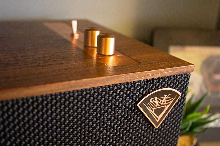 It can be hard to tell how big it is from the pictures, but the Stanmore II fits comfortably on any computer desktop at just under 14 x 8 x 7”. Unlike the other high-end Bluetooth speakers that we’ve reviewed thus far, the Marshall has no battery and requires proximity to a wall outlet.
