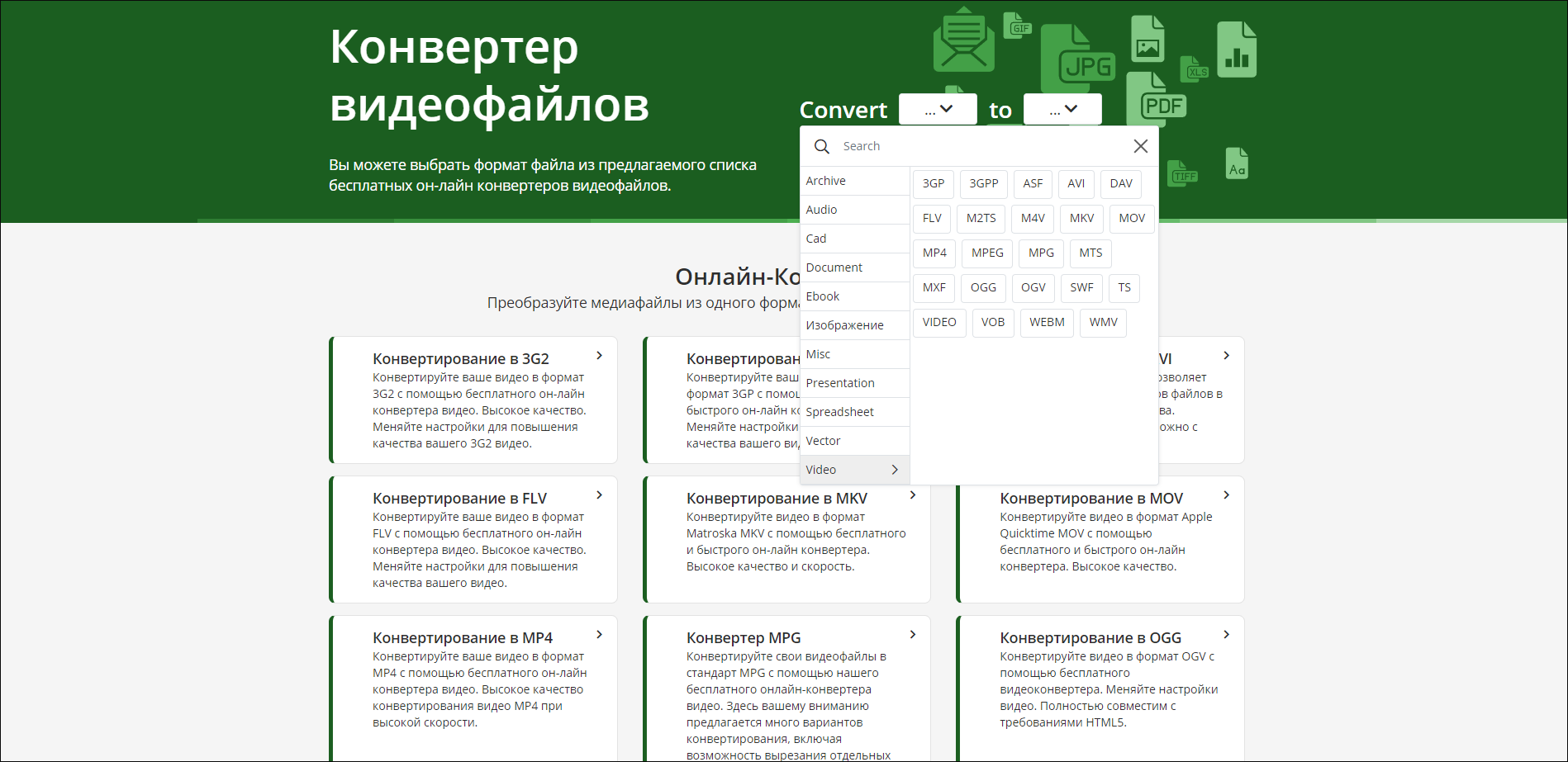Если вы ищете простой в использовании конвертер видео, попробуйте Convertfiles.com. По сравнению с другими онлайн-конвертерами видео, Convertfiles.com очень чистый и простой в использовании.