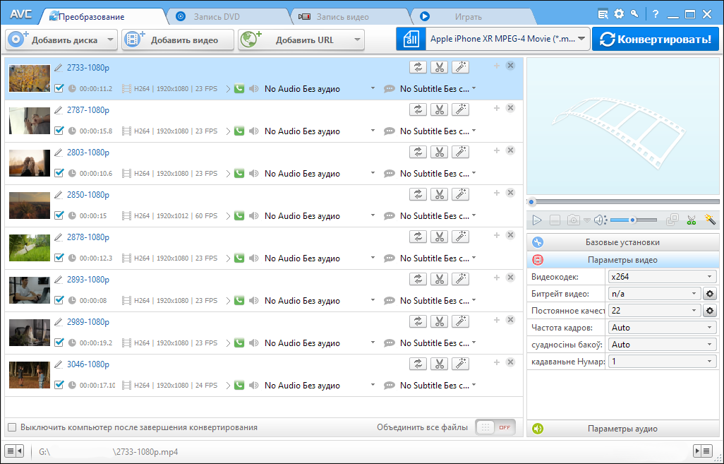 - Неудобная настройка конвертирования — сначала нужно выбрать шаблон с подходящим контейнером и только затем можно поменять доступные для этого случая параметры.