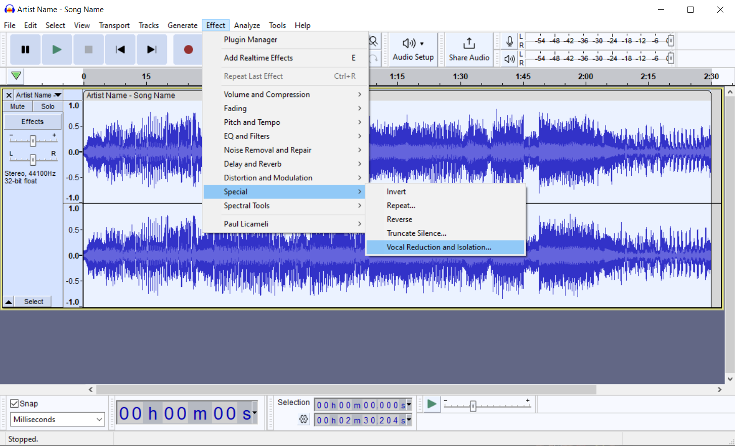 - Isolate the vocals by using the «invert» function. This will cancel out everything except the vocals.