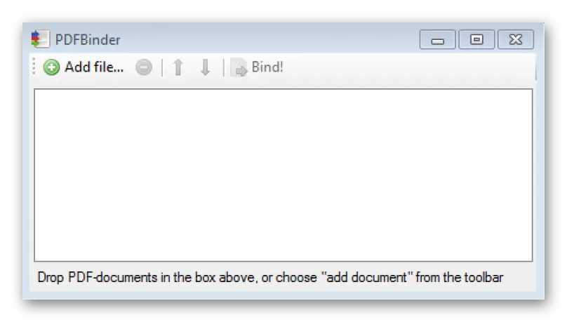 Приложение с открытым исходным кодом PDFBinder можно скачать с сервиса Google Code. Работа с утилитой упрощена до предела, нужно только добавить необходимых файлы, с помощью кнопки «Add File» и запустить процедуру объединения кнопкой «Bind!». Управлять файлами можно при помощи кнопок «Remove Selected» (Удалить), «Move Up» (Идти вверх), «Move Down» (Идти вниз). Этот софт используется только для объединения PDF файлов, посмотреть и отредактировать документы с его помощью невозможно. Данную утилиту можно использовать бесплатно. Русский интерфейс отсутствует.