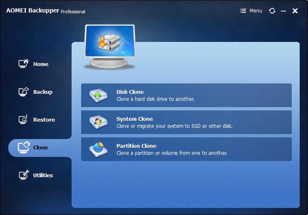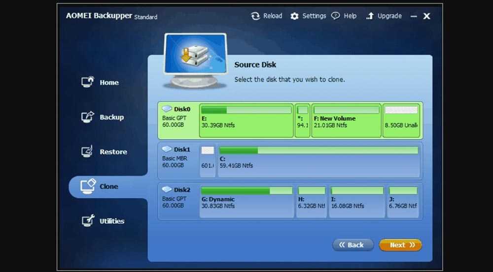 Шаг 2. Открыть AMOEI Backupper, на левой боковой панели нажать «Клонировать», а затем выбрать «Клонирование диска».