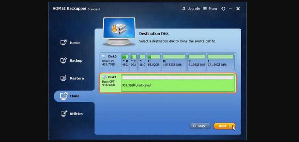 - Теперь отметьте твердотельный накопитель, чтобы программа смогла перенести на него данные.