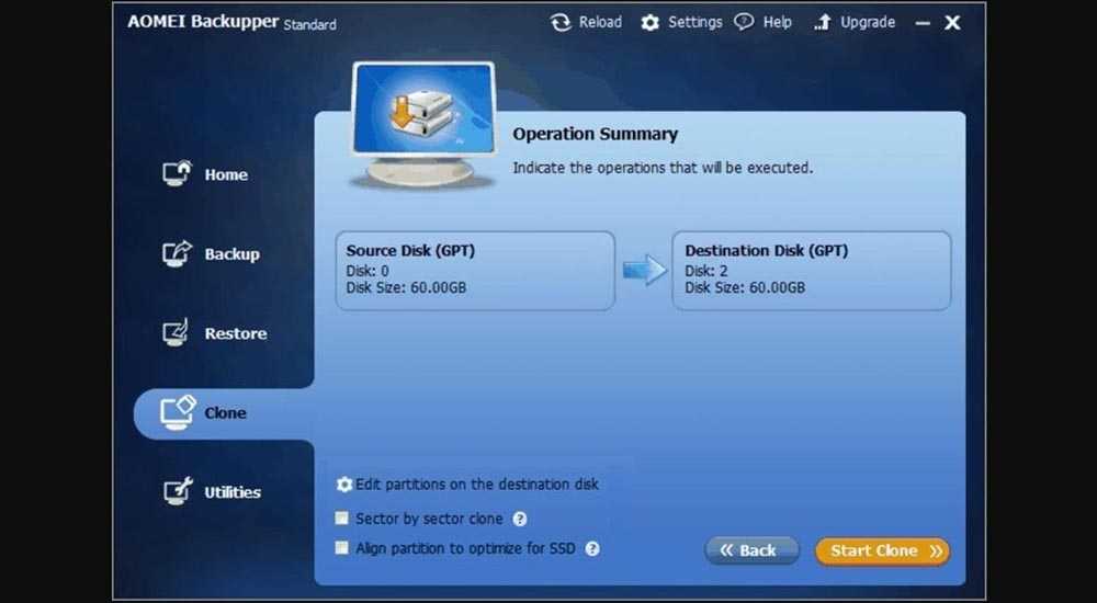 Шаг 5. В правом нижнем углу расположены две опции. Выбрать пункт «Начать клонирование». В левой части окна есть три варианта. Перед тем, как начать клонирование, необходимо сделать следующее: