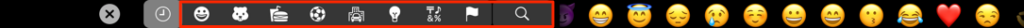 Select a category icon to view emojis on the category. You can also tap the Search icon to find an emoji. That will launch the minimized version of the emoji window.