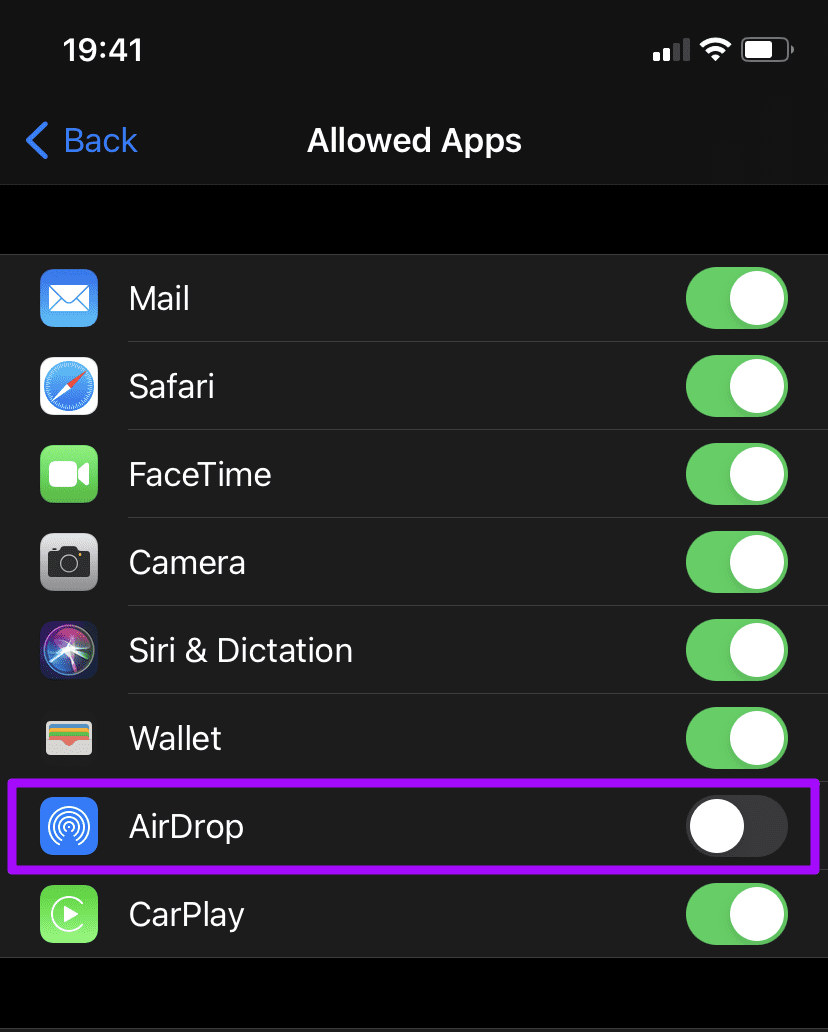 Если у вас есть контакты AirDrop на листе обмена, вы не можете избавиться от них по отдельности. Единственный способ удалить их — отключить сам AirDrop. Очевидно, это будет означать, что вы не сможете ничего отправлять или получать через AirDrop. Если вы хотите продолжить, начните с открытия приложения «Настройки». Затем нажмите «Экранное время» > «Контент и ограничения конфиденциальности» > «Разрешенные приложения» и выключите переключатель рядом с AirDrop.