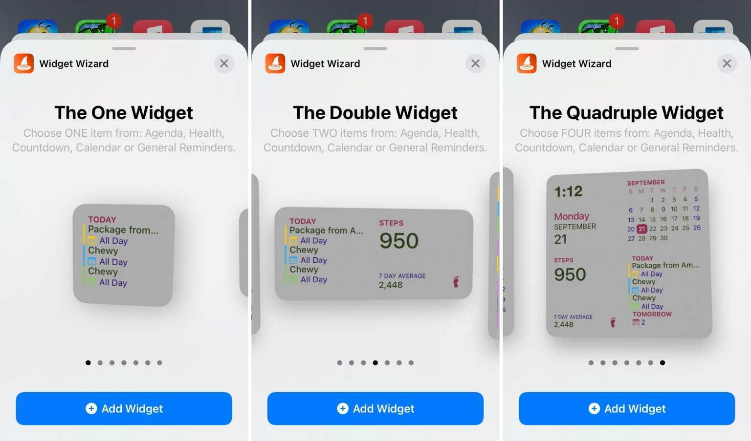 Коснувшись элемента виджета, вроде количества пройденных шагов, вы откроете приложение Widget Wizard с более подробными деталями. Благодаря этому прямо через виджеты можно добавлять события, напоминания и данные о здоровье.