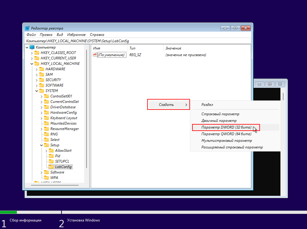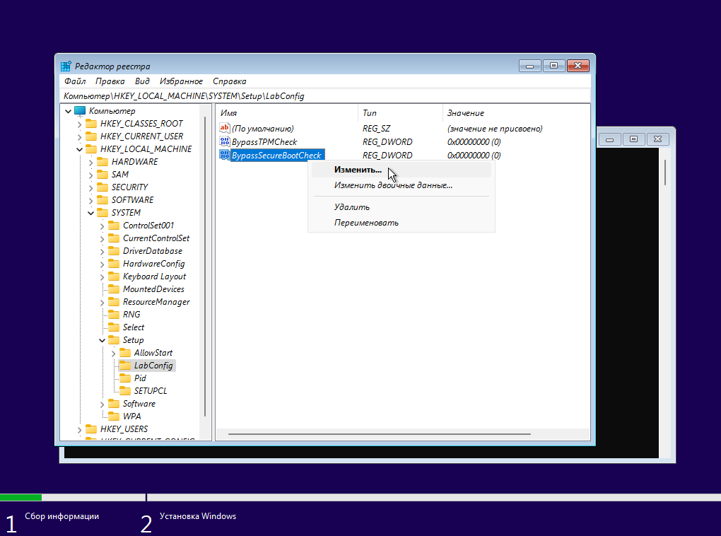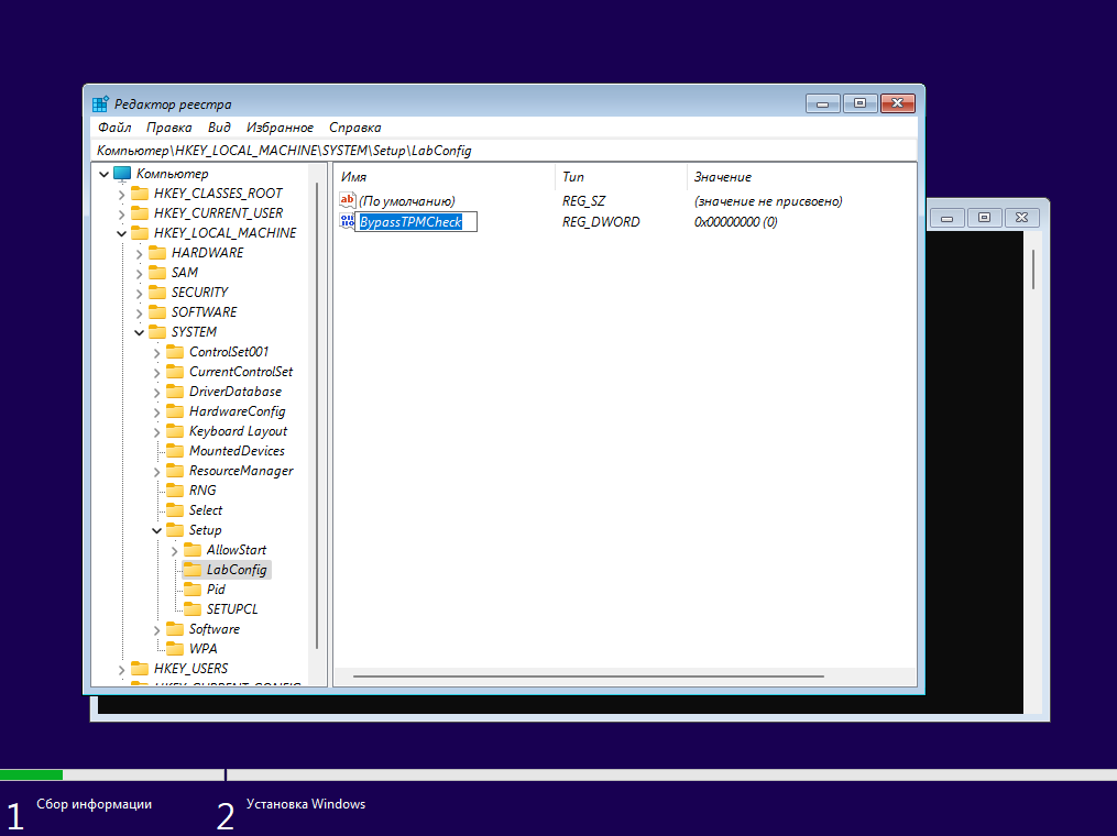 Теперь нам нужно ввести название нового параметра «BypassTPMCheck».