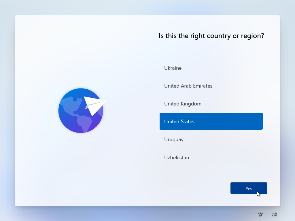 Во-первых, вам необходимо загрузить и настроить ISO-файл Microsoft для Windows 11. Затем вы установите Windows 11 с помощью предпочтительного метода – выделенного ПК, системы с двойной загрузкой или виртуальной машины. Следуйте инструкциям на экране, чтобы установить ОС, после чего появятся экраны установки. Вам будет предложено указать вашу страну или регион, а затем раскладку клавиатуры или метод ввода. Подтвердите правильные и нажмите Да.