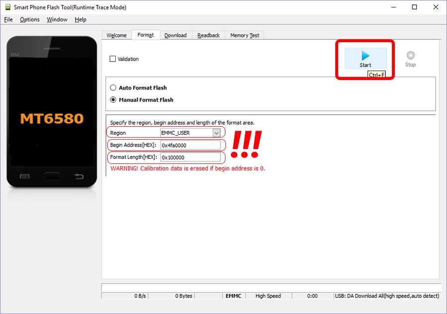 И ввести в верхнем и нижнем текстовых полях те же значения: 0x4fa0000 и 0x10000 соответственно. Нажать «ОК».