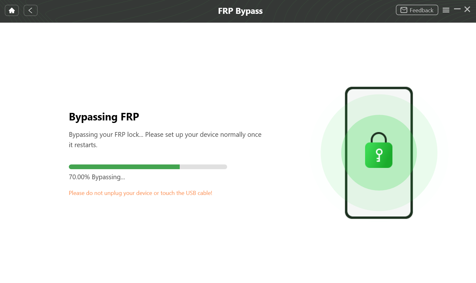 DroidKit запустит процесс обхода FRP, который может занять несколько минут. Поэтому не отключайте устройство.
