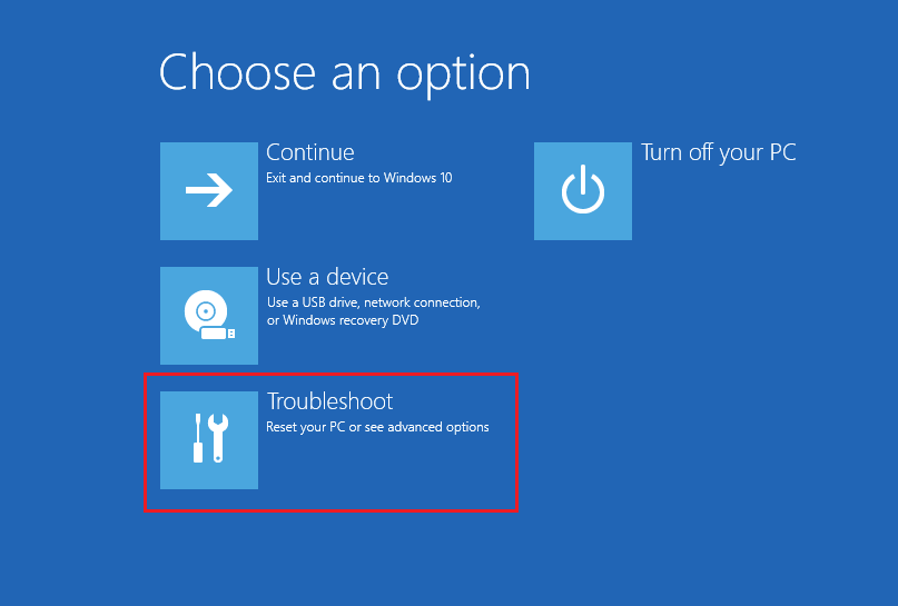 4. After a reboot, you’ll enter safe mode. From here, click on Troubleshoot.